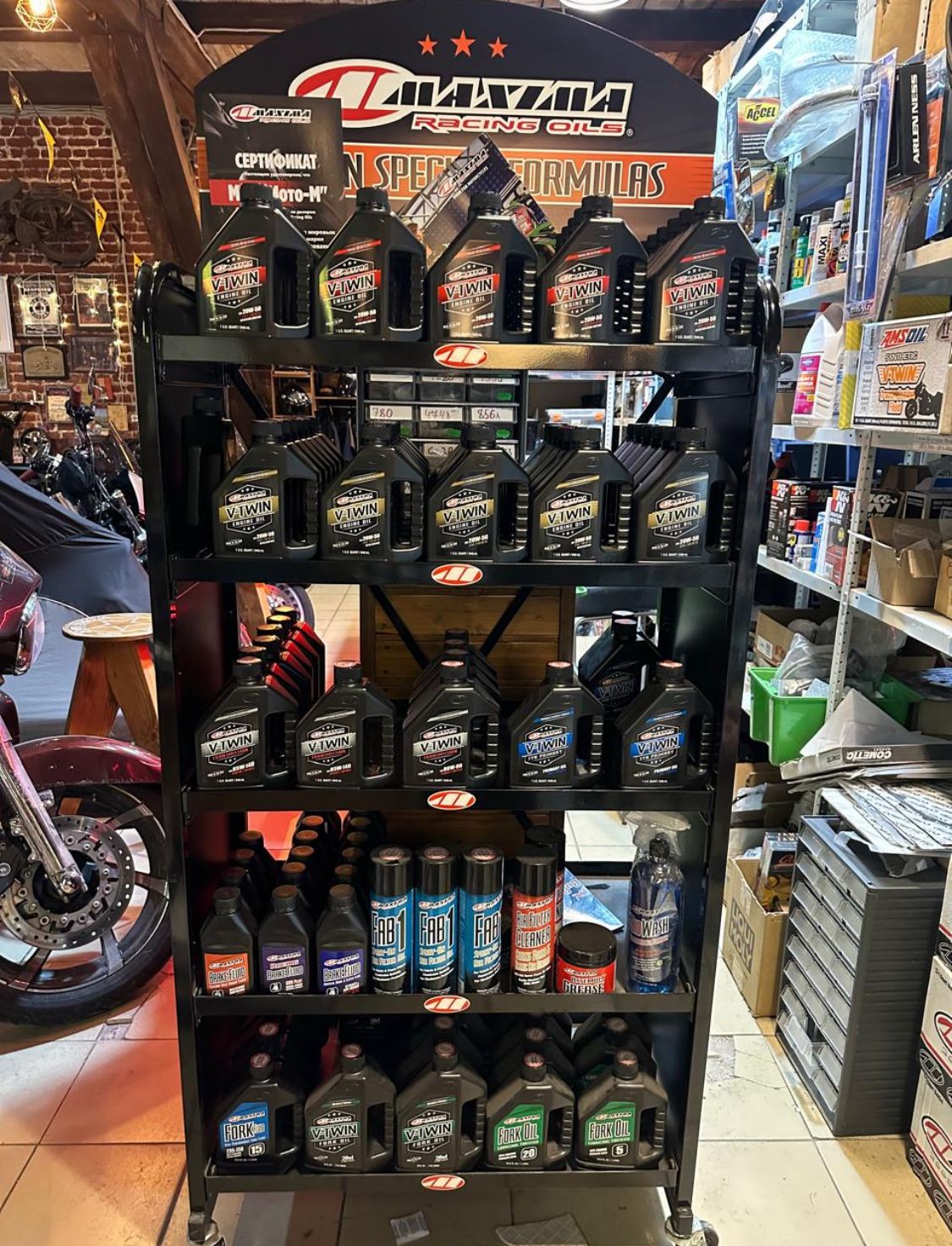 V-образные двигателя весьма требовательны к качеству используемого в них масла, им необходима постоянная защита от износа и внутренних загрязнений для идеальной работы. Maxima может предложить идеальный вариант, сочетающий спортивные традиции и современные технологии — полностью синтетические, усиленные эстерами, 4-тактные масла, разработанные специально под нужды V-образных двигателей. Товары
